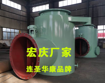 4、分匯器是一個三通閥,通過導(dǎo)向板的切換可使膠球進入需要清洗的一側(cè)凝汽器中工作。一般一臺機組需兩臺分匯器,其進口通徑為DN100,分配口為DN89,膠球投用時可通過窺視窗觀察運行情況。FH型分匯器(清潔海綿膠球切換三通管閥)
